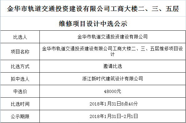 金華-義烏-東陽市域軌道交通工程軌道、公交乘車碼二碼融合清分系統(tǒng)集成項目的中標(biāo)候選人公示
