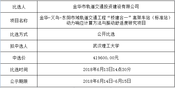 金華-義烏-東陽市域軌道交通工程軌道、公交乘車碼二碼融合清分系統(tǒng)集成項(xiàng)目的中標(biāo)候選人公示