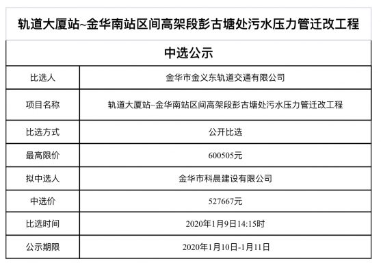 金華-義烏-東陽市域軌道交通工程軌道、公交乘車碼二碼融合清分系統(tǒng)集成項(xiàng)目的中標(biāo)候選人公示