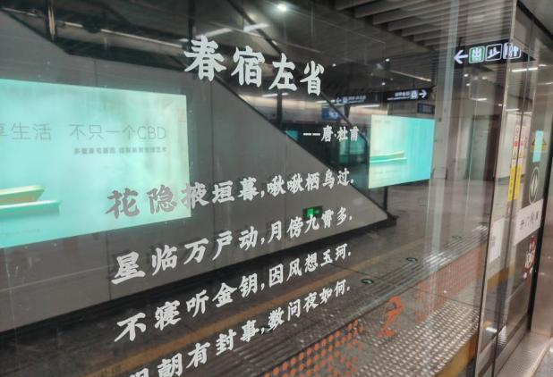 站臺(tái)門(mén)上,古詩(shī)詞與廉潔標(biāo)語(yǔ)精心交錯(cuò),詩(shī)意與廉語(yǔ)交融。
