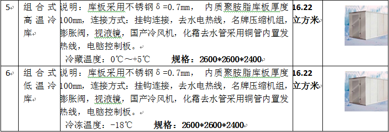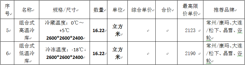 2.塘雅車輛段綜合樓廚房設(shè)備清單報(bào)價(jià)表中序號(hào)5、組合式高溫冷庫以及序號(hào)6、組合式低溫冷庫的規(guī)格、數(shù)量及單位進(jìn)行修改,詳見下表:
