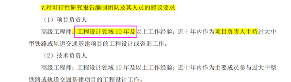 答: “工程設(shè)計領(lǐng)域10年及以上工作經(jīng)驗”可通過畢業(yè)時間結(jié)合工作內(nèi)容(或工作崗位或工作業(yè)績)來證明,同時近10年內(nèi)作為項目負責人主持過大中型鐵路或軌道交通基建項目的工程設(shè)計或咨詢工作。
